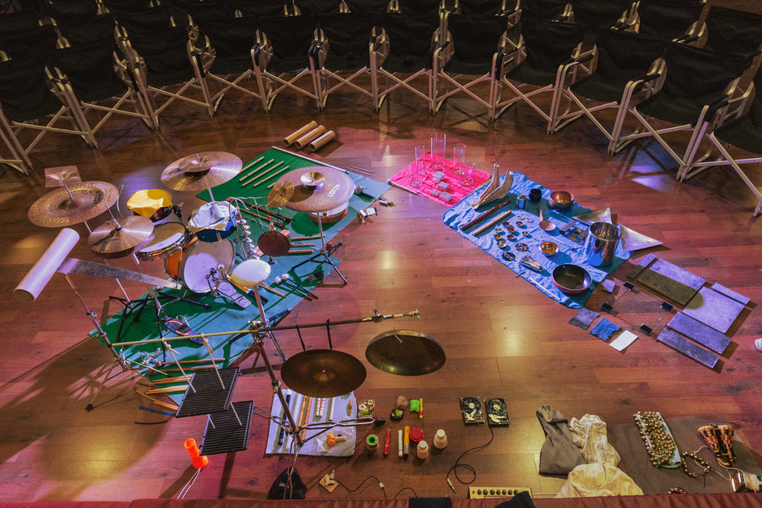 The instrument follows the same logic. It should not be considered as a series of disconnected objects, but rather as a single musical instrument gathered surrounding the improviser.